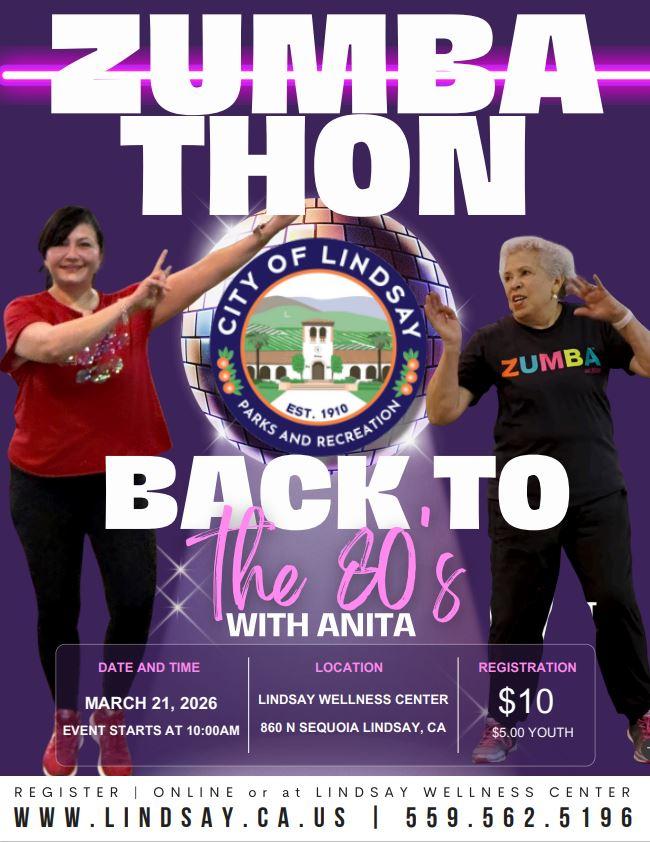 Join us for Zumbathon: Back to the 80's with Anita on March 21, 2026 at 10:00AM.
